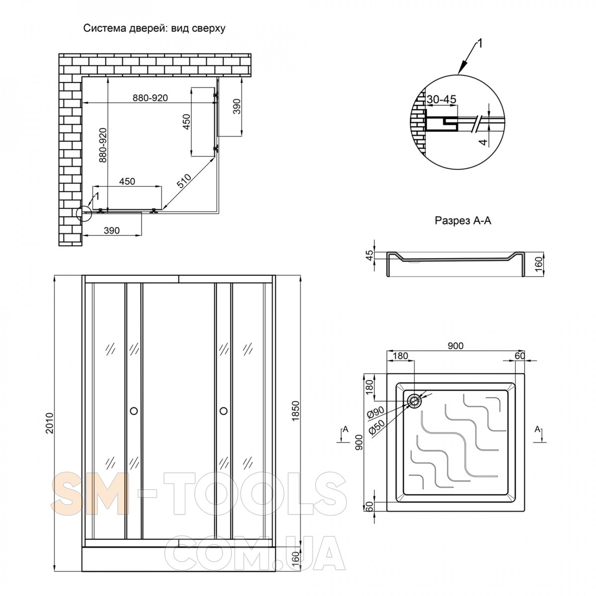 Модель душевая кабина: sc90x90.sat.low.l. поддон: st90x90x16.
