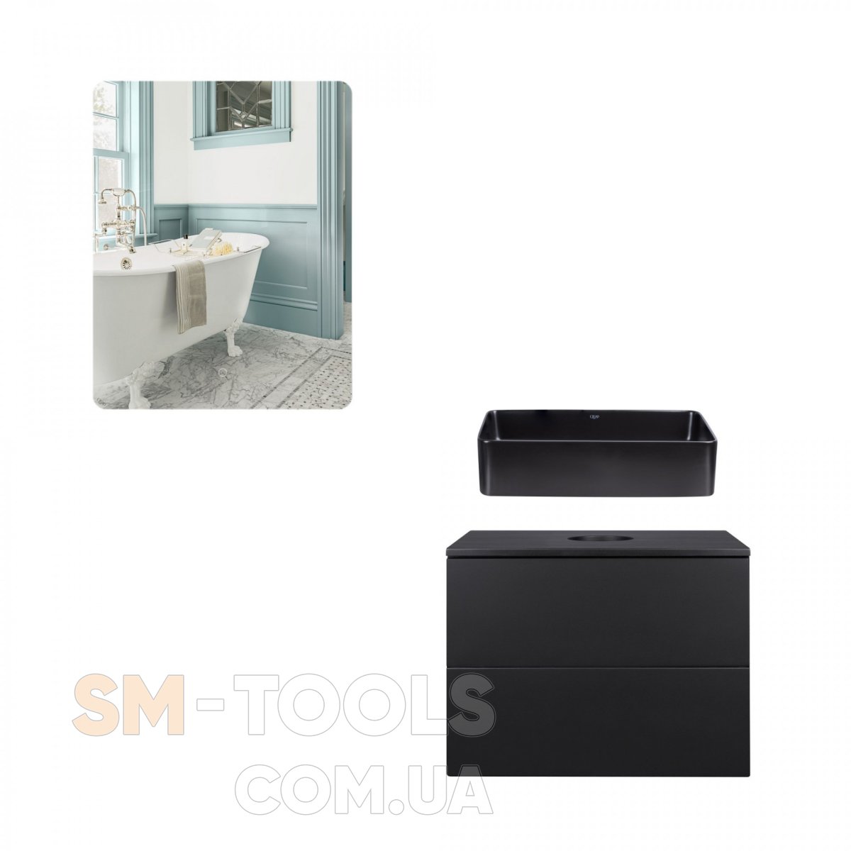Комплектация Комплект мебели для ванной Qtap тумба + раковина + зеркало QT044VI43008: