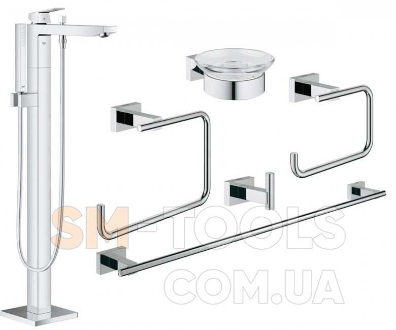 Смеситель для ванны + аксессуары Grohe Eurocube 23672001+40758001