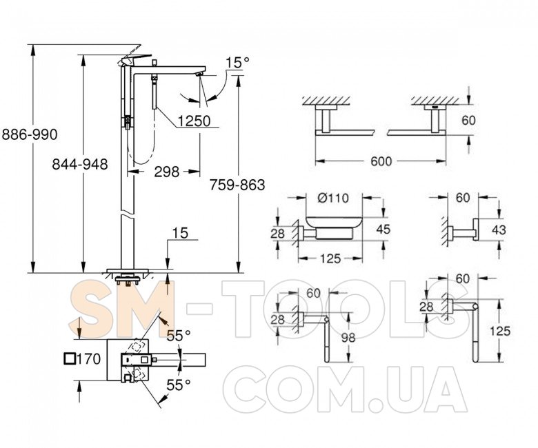 Высота смесителя 948 мм