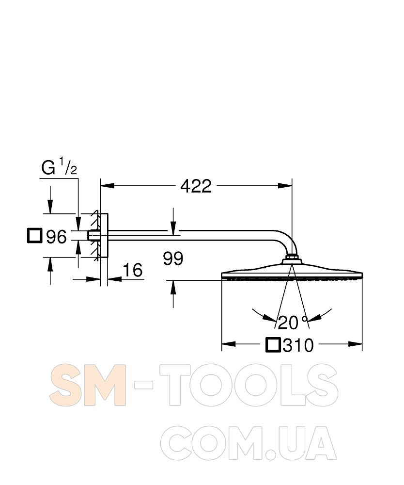 Диаметр верхнего душа, мм: квадрат 310 х 310 мм