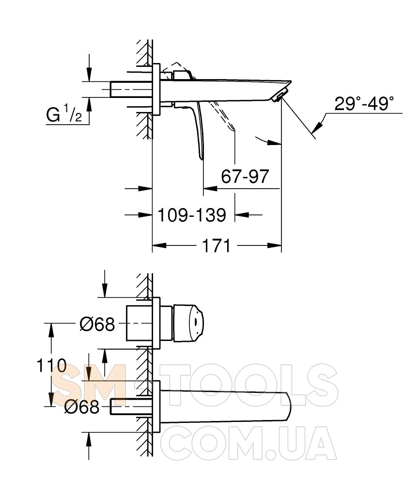 Тип монтажа смесителя: На стену