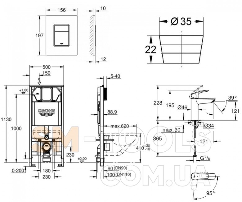 Инсталляция + смеситель Grohe Eurosmart New 39687MBE