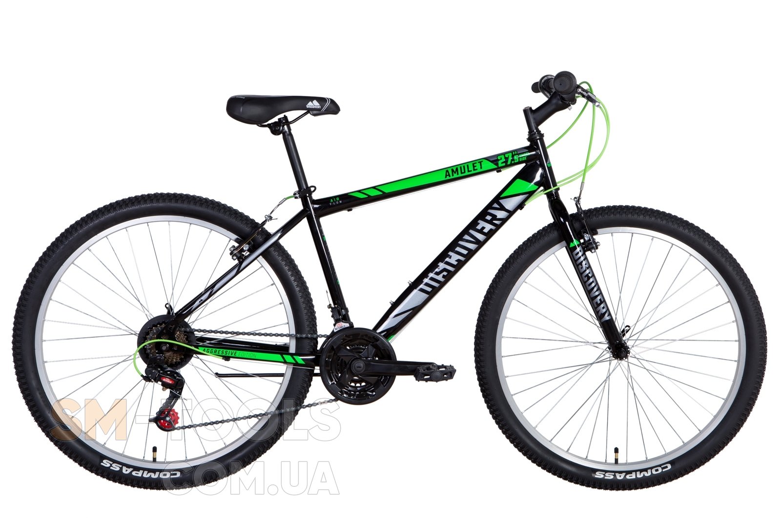 Велосипед ST 27.5" Discovery AMULET Vbr рама-19" черно-зеленый с серым 2021