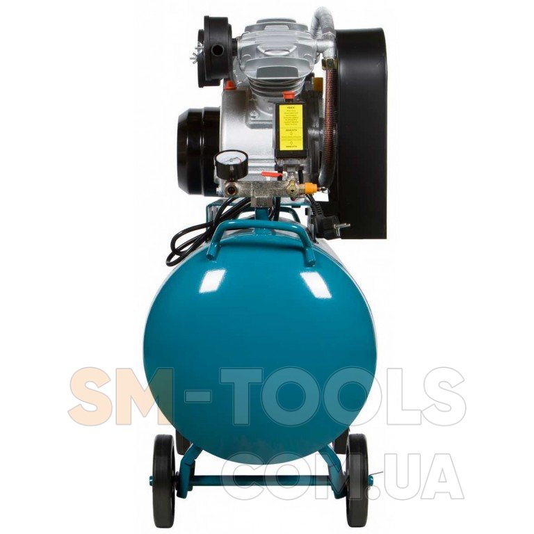 Для достижения более высокой производительности установлена компрессорная головка с двумя цилиндрами V-образного расположенияПривод на головку передаётся при помощи ременной передачи, что уменьшает нагрузку на электродвигатель.