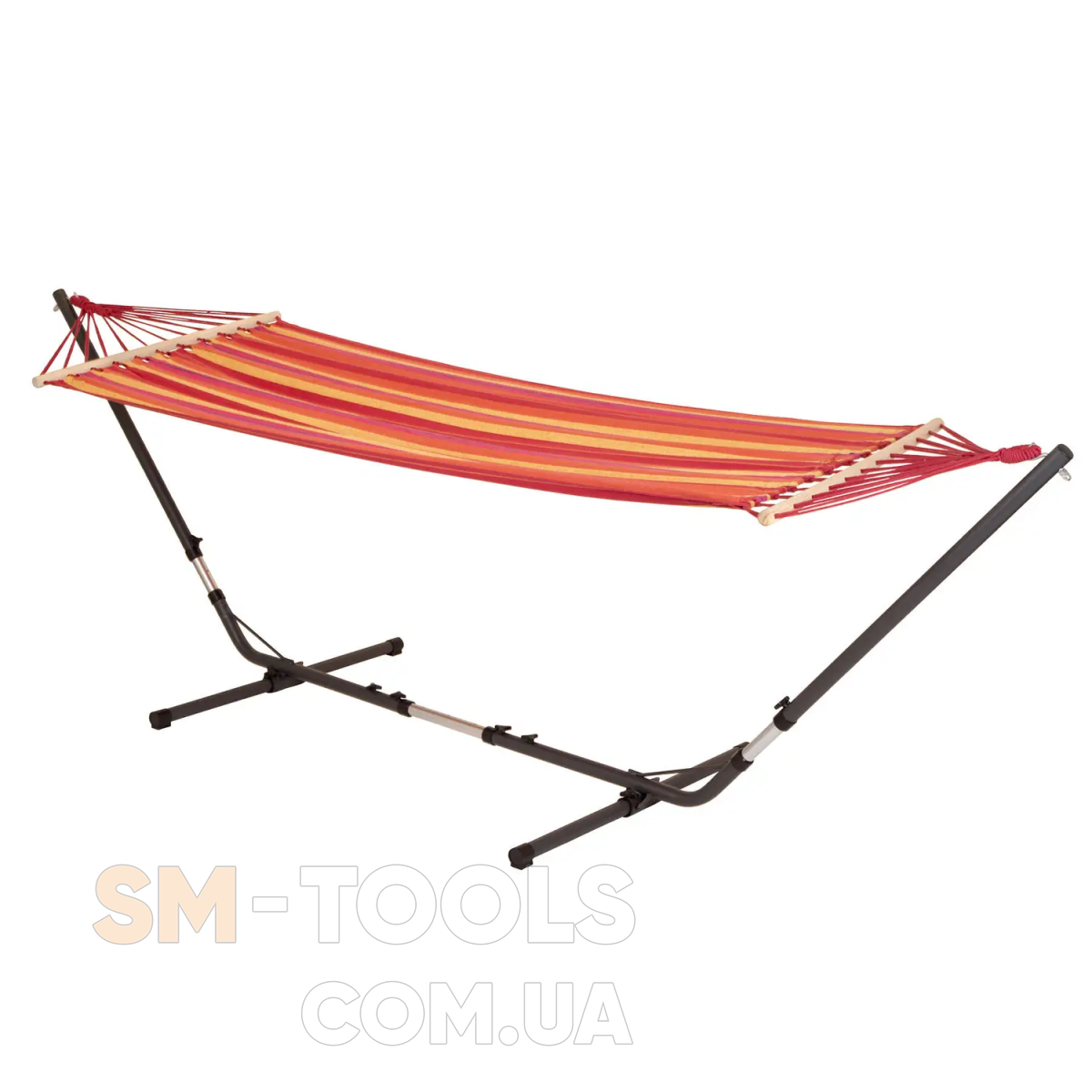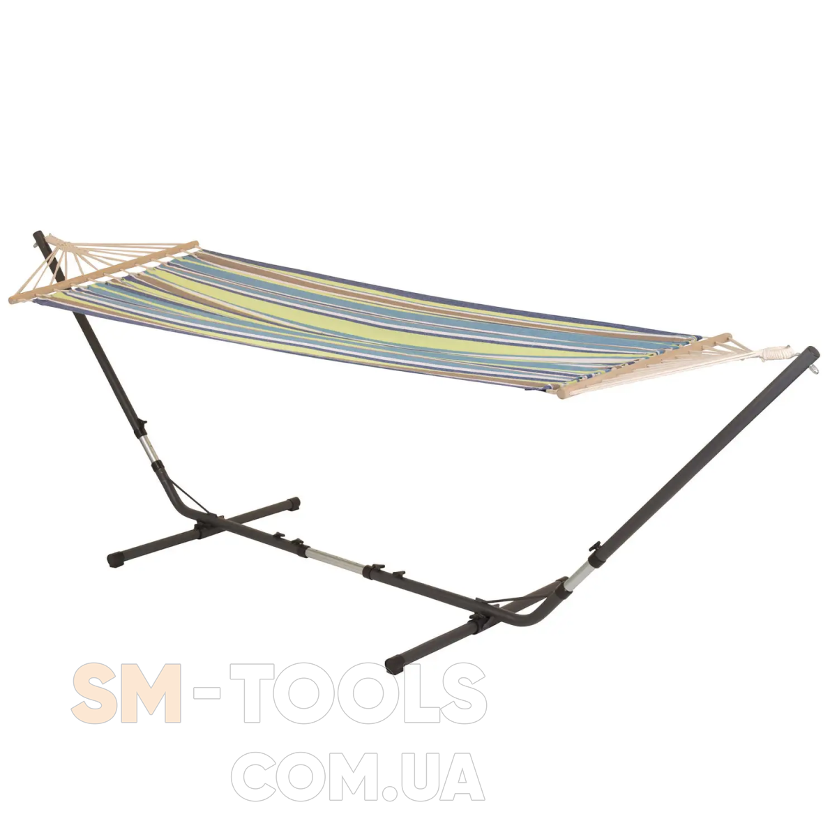 Bo-Camp Universal Grey - прочная и очень удобная стойка для гамака. Она легко собирается и разбирается с помщью винтовых зажимов, а ножки с противоскользящими накладками предотвратят нежелательное перемещение стойки во время отдыха в гамаке, а также уберегут поверхность пола от повреждений при использовании или перемещении. Благодаря конструкции рамы, выполненой из стальных труб с порошковым покрытием, подставка имеет большой диапазон регулировок. Подходит для гамаков общей длиной до 385 см, а высота поднимается до 140 см. Кроме того, стойка является мобильной, так как в разобранном виде компактно помещается в идущий в комплекте чехол.