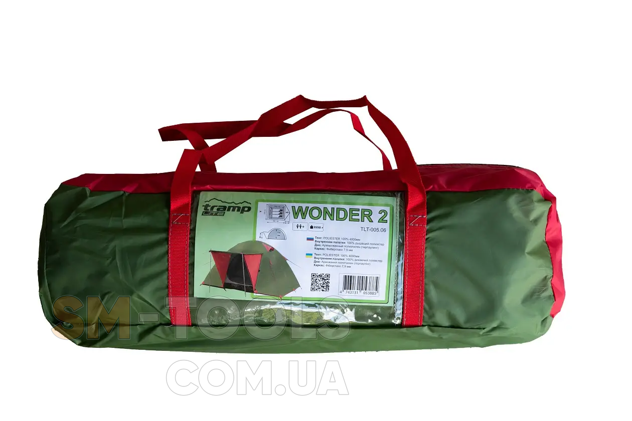 Простая двухместная палатка Tramp Lite Wonder 2 для коротких походов выходного дня и отдыха на природе в теплое время года.