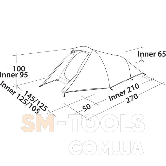 - Hydrostatic Head 2000 mm - ткань палатки имеет полиуретановое покрытие, которое обеспечивает водонепроницаемость 2000 мм вод. ст.