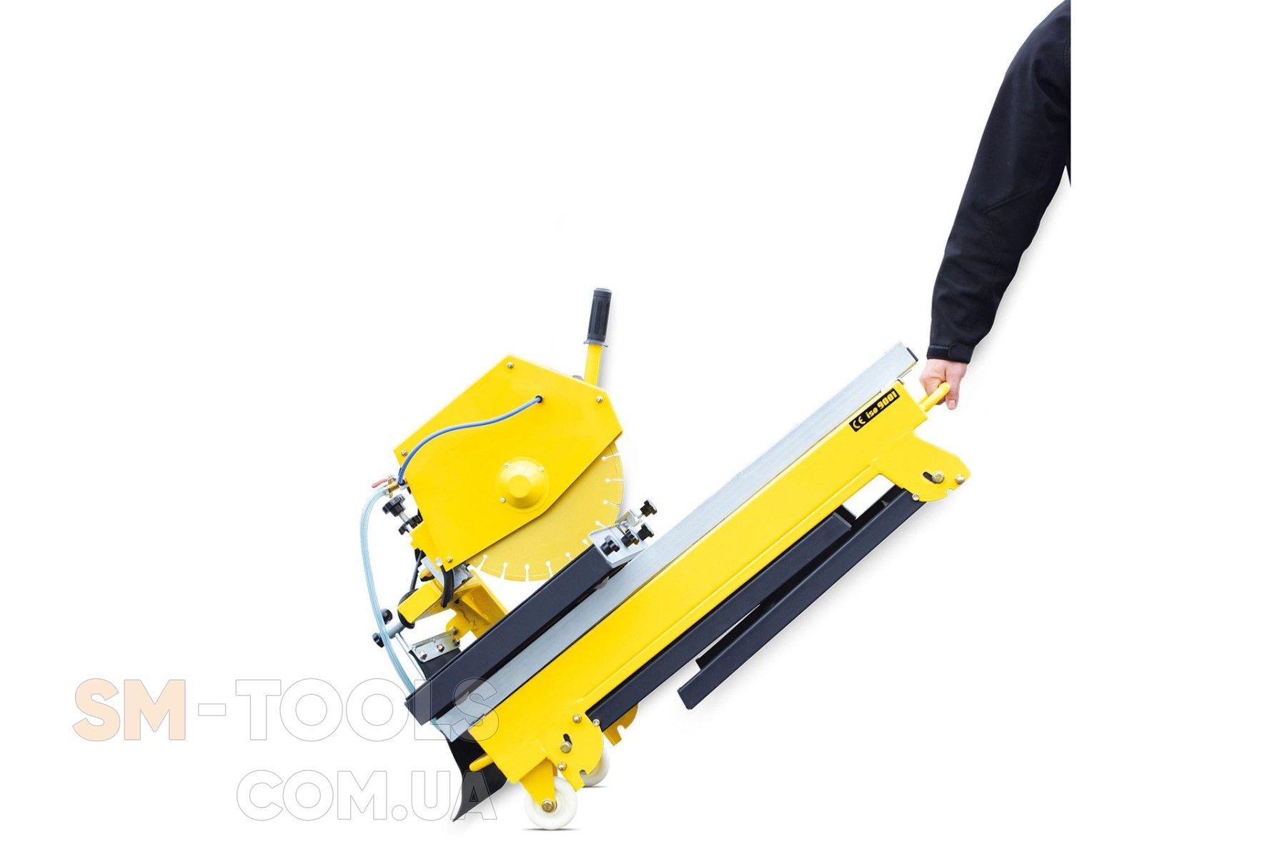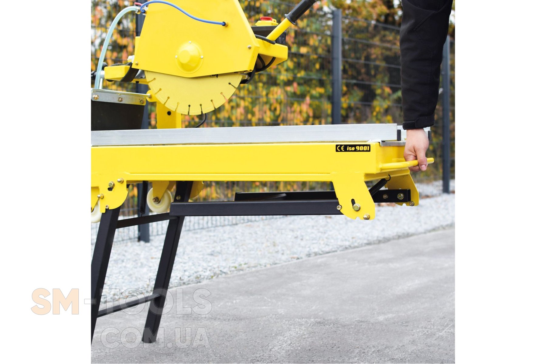 - система водяного охлаждения включает резервуар на 38 л для мокрой распиловки, что снижает нагрев диска, образования пыли и продлевает эксплуатационный срок агрегата;