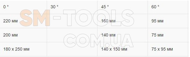 Станок имеет возможность реза заготовки в диапазоне 0° / 60°.