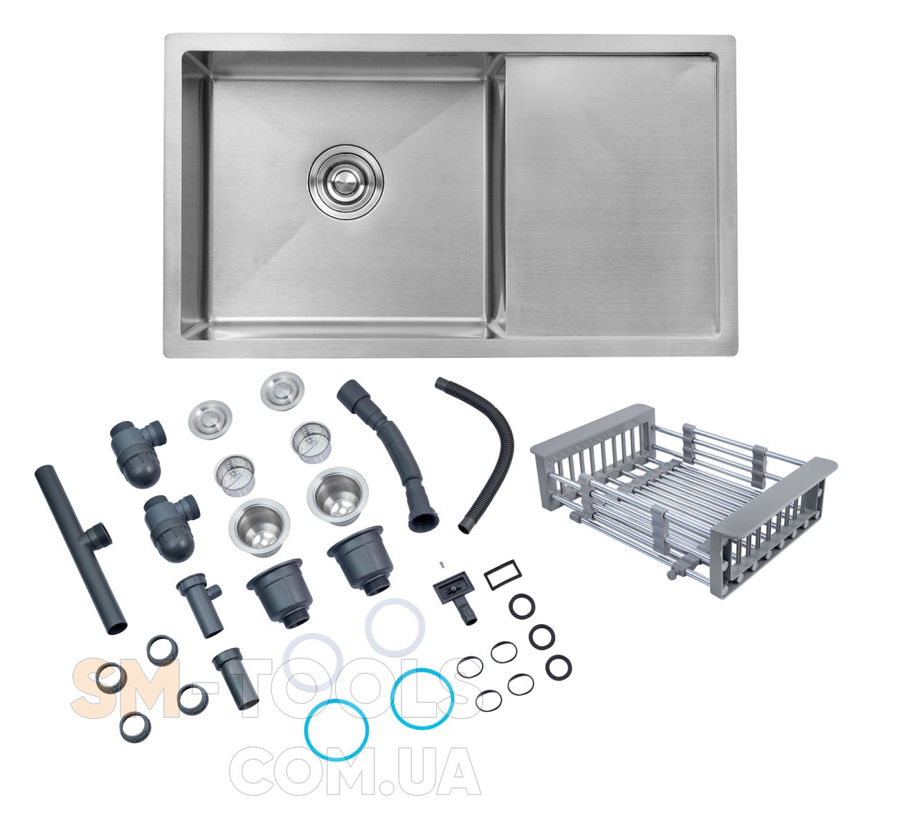 Мойка, сифон, слив-перелив, корзинчатый вентиль, сушилка.