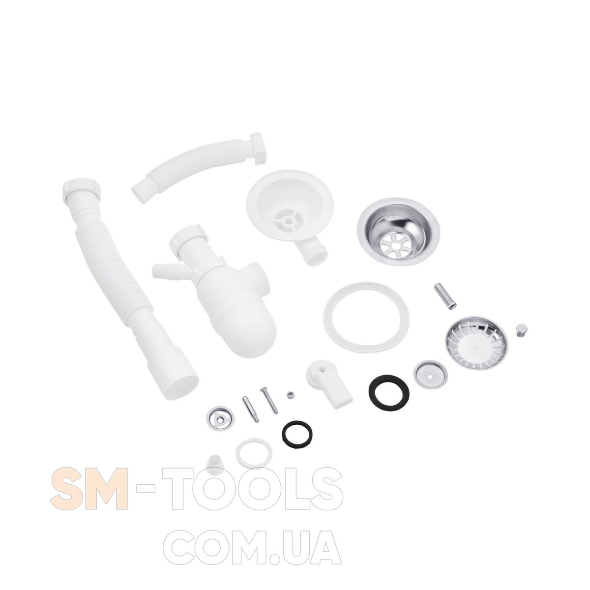 Мойка, сифон, слив-перелив, корзинчатый вентиль, крепления.