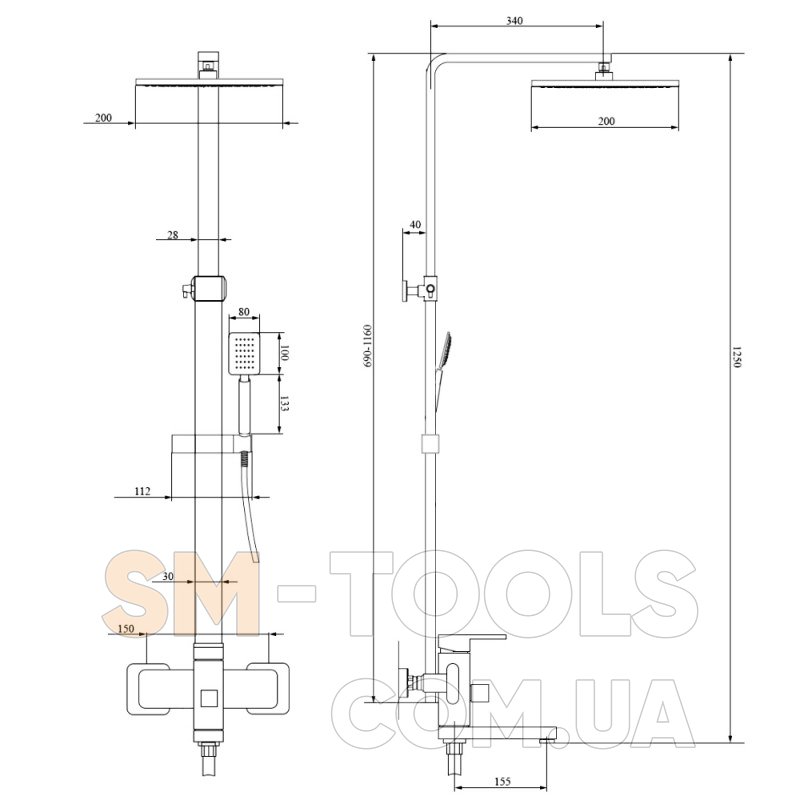 Форма лейки Ручной душ: Квадратная. Верхний душ: Квадратная.