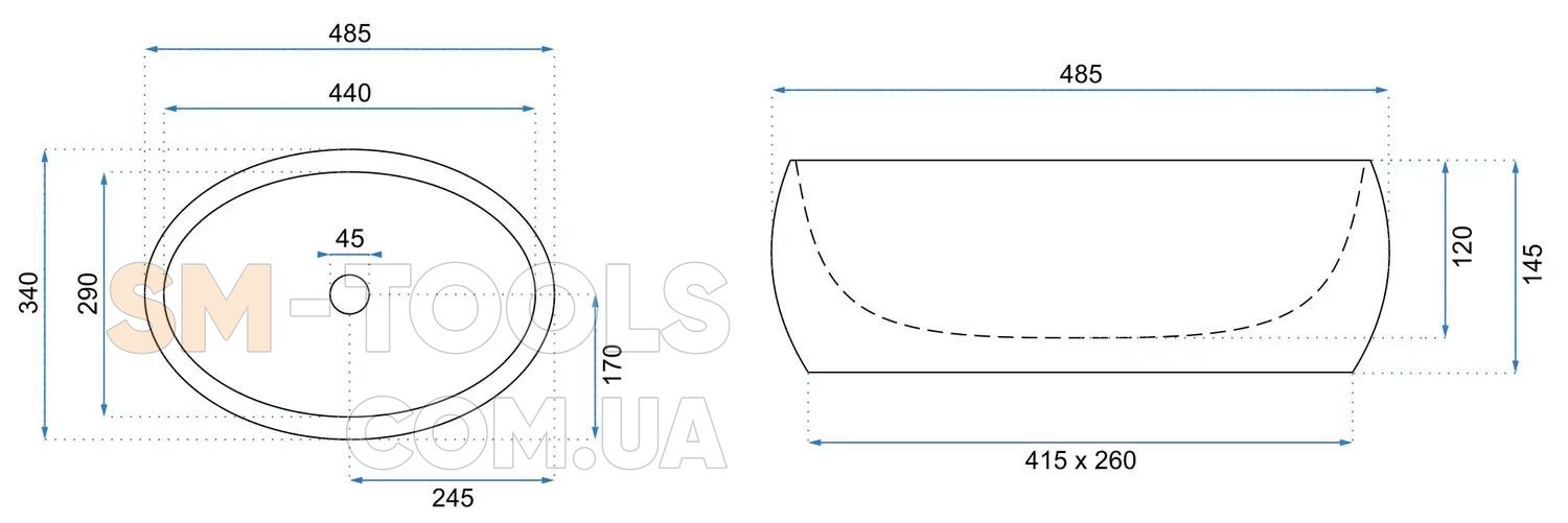 Наличие отверстия для перелива нет