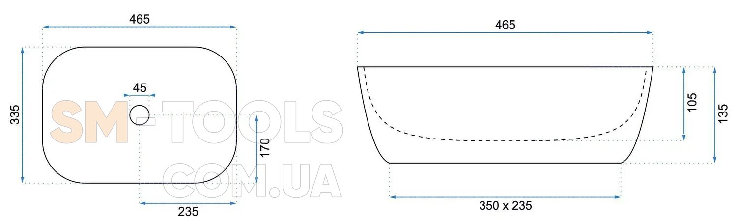 Форма раковины прямоугольная