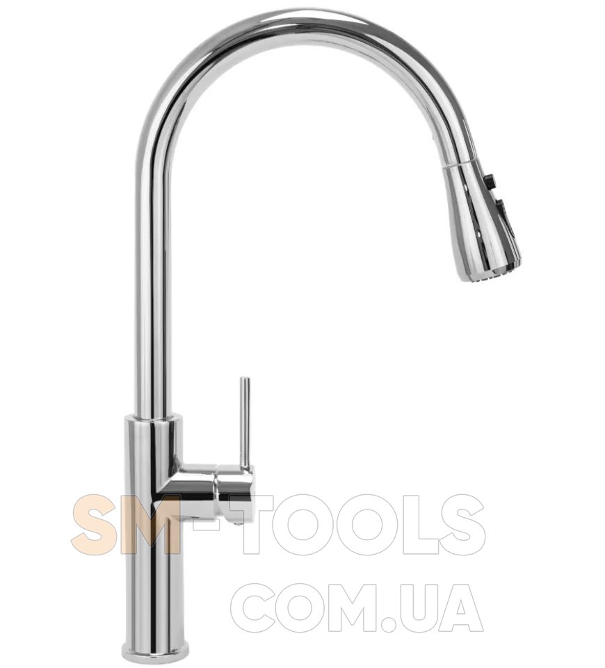 Основа любой функциональной кухни – правильный кухонный смеситель. Латунный корпус является гарантией долговечности и стабильности батареи. Покрытие слоем хрома придает смесителю устойчивость к загрязнениям, а покраска в цвет хрома придает ему необычный внешний вид, который будет идеально сочетаться с декором вашей кухни. Долговременная надежность гарантируется использованием керамической головки. Изогнутый носик позволяет направить струю в любое место. На кончике носика есть переключатель, который позволяет выбирать между рассеянной струей и концентрированной струей.