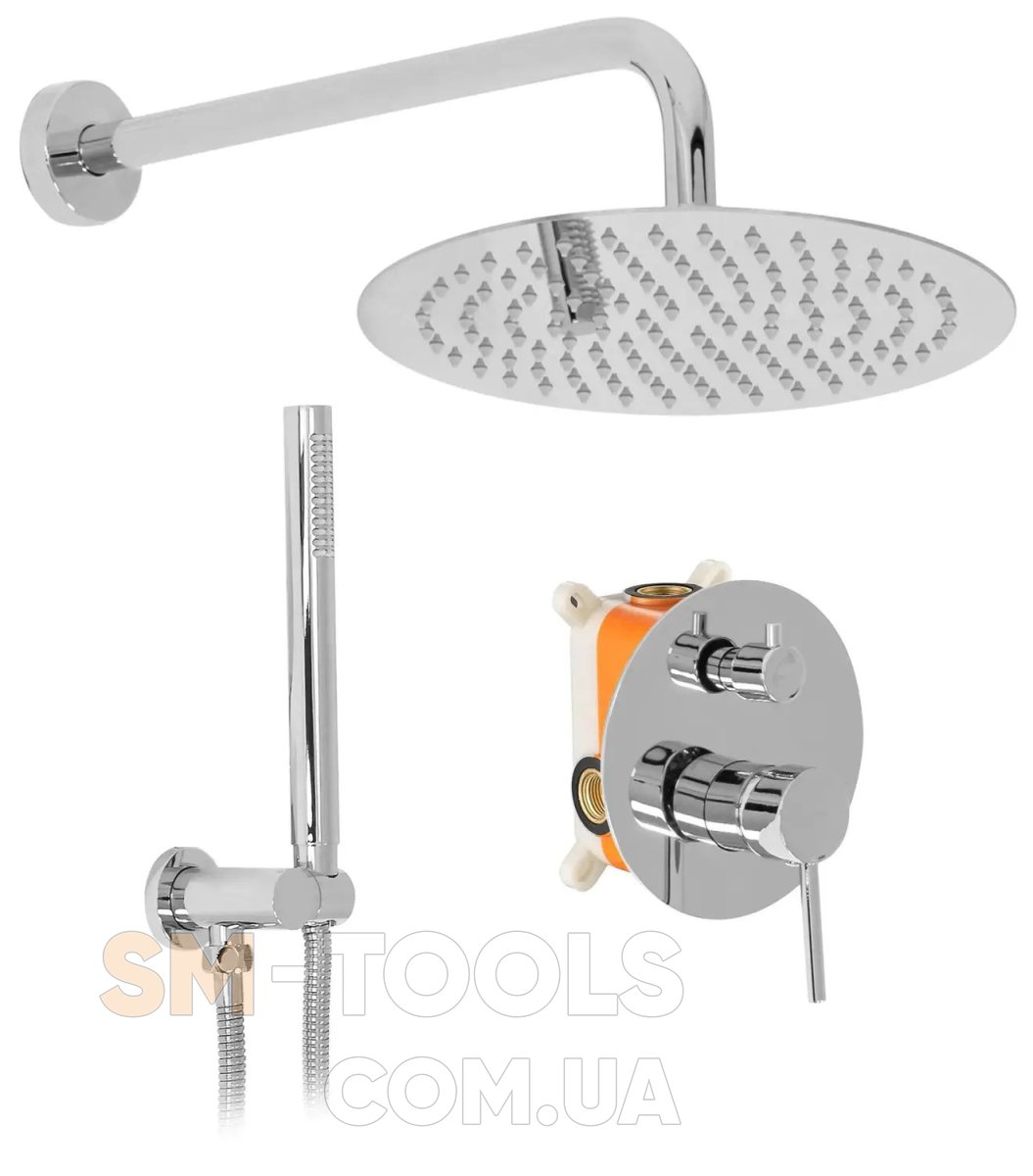 Представляем вам модель комплекта для скрытого монтажа Lungo. Благодаря своей универсальности и удивительным эстетическим качествам набор станет отличным выбором для обладательниц любой ванной комнаты. Модная форма элементов покрыта лазером с четырехслойным покрытием из хрома высочайшего качества. Благодаря этой технологии аккумулятор защищен от коррозии, потускнения и обесцвечивания. В комплект входят ультратонкий круглый ливневый душ диаметром 2 мм 30 см, аккумулятор с поверхностными и скрытыми элементами, весы с трубкой и набор точек.