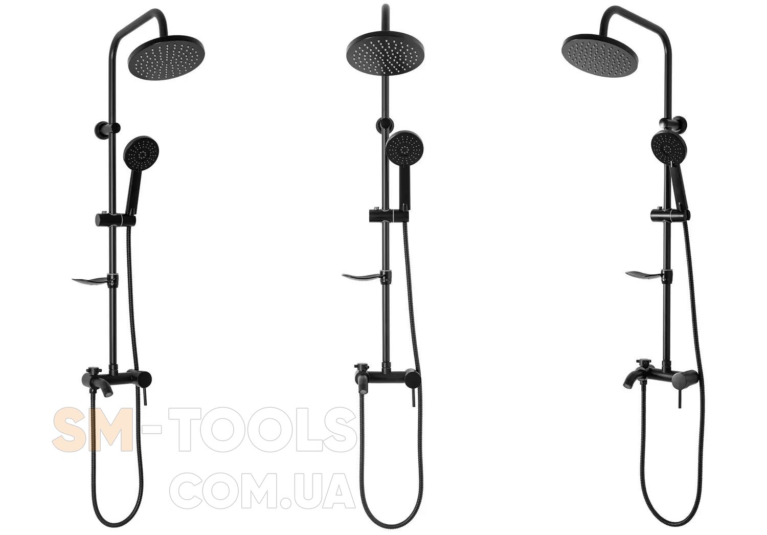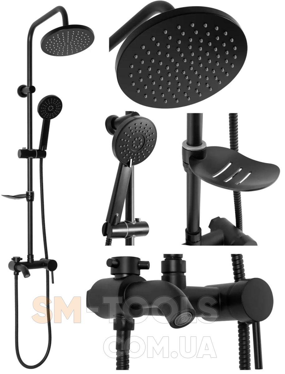 Душевой набор разработан с учетом комфорта и функциональности. Цвет комплекта подчеркнет неповторимость каждой ванной комнаты. При производстве наших душевых наборов мы использовали передовые и лучшие технологии, чтобы гарантировать максимальную безопасность и комфорт в повседневном использовании. Уникальный дизайн и высокое качество используемых материалов гарантируют долговечность и надежность на долгие годы. Предлагаемое нами устройство изготовлено из прочных материалов, таких как латунь и пластик. Благодаря этому черный душевой набор Rea Luis устойчив к неблагоприятным факторам и легко чистится. Форсунки дополнительно оснащены системой Anti-Calc, которая предотвращает образование накипи, обеспечивая бесперебойную работу в течение длительного времени. Представленный душевой набор оснащен насадкой, тропическим душем и классическим краном. В нем также есть навесная полочка для мыла, которую можно установить на любую высоту.