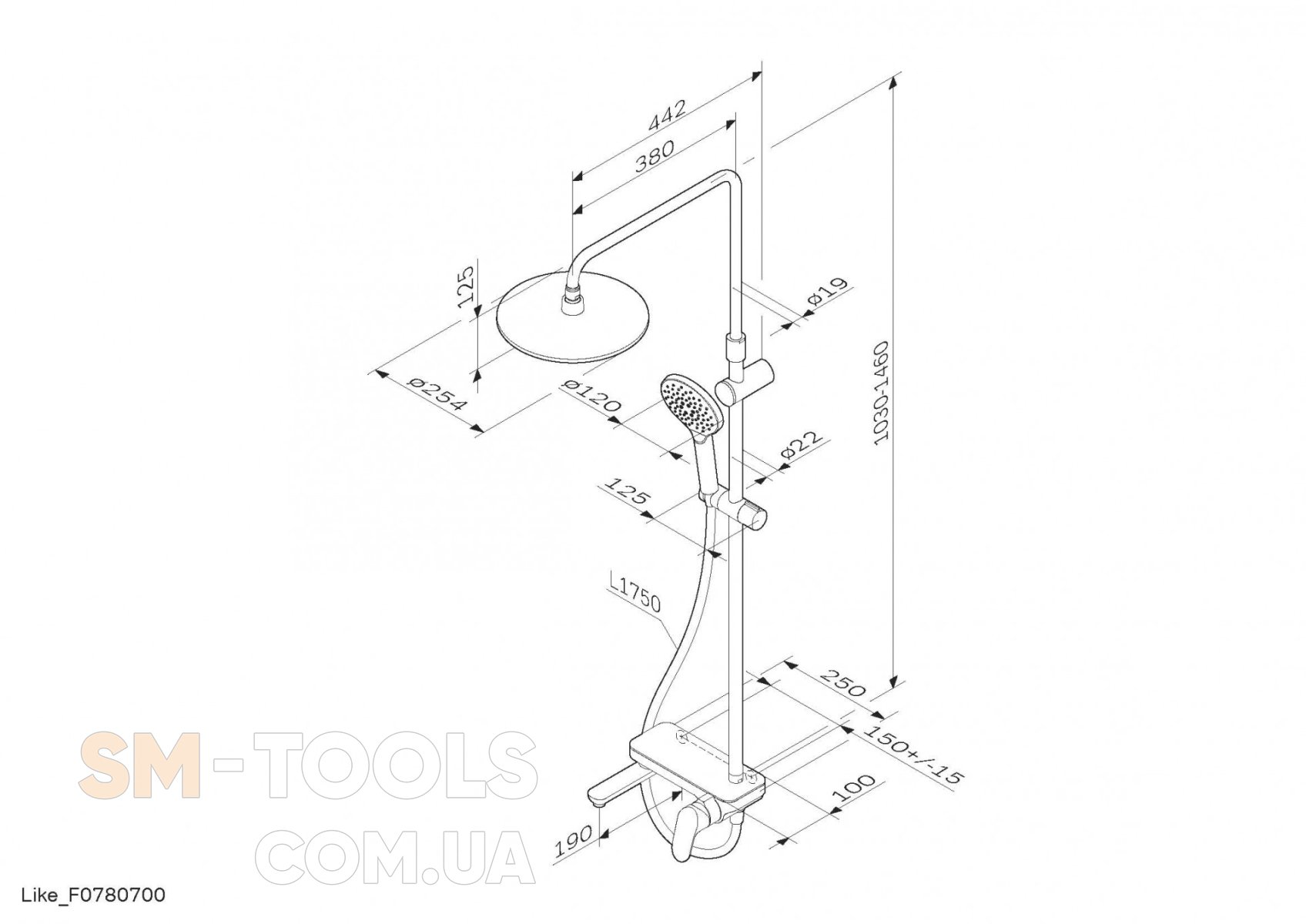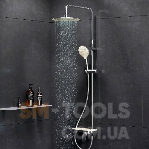 Премиальные размеры и продуманные детали: увеличенный диаметр душевых леек (верхний душ 254 мм и ручной душ 120 мм) позволит ощутить преимущества тропического душа, тогда как увеличенная длина шланга 1750 мм обеспечит свободу движений во время принятия душа. Телескопическая поворотная штанга регулируется по высоте в диапазоне от 1030 до 1460 мм, обеспечивая комфорт для людей любого роста, а шаровой шарнир в держателе верхнего душа позволяет регулировать угол его наклона.