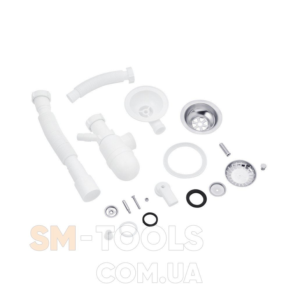 Мойка, сифон, слив-перелив, корзинчатый вентиль, крепления.