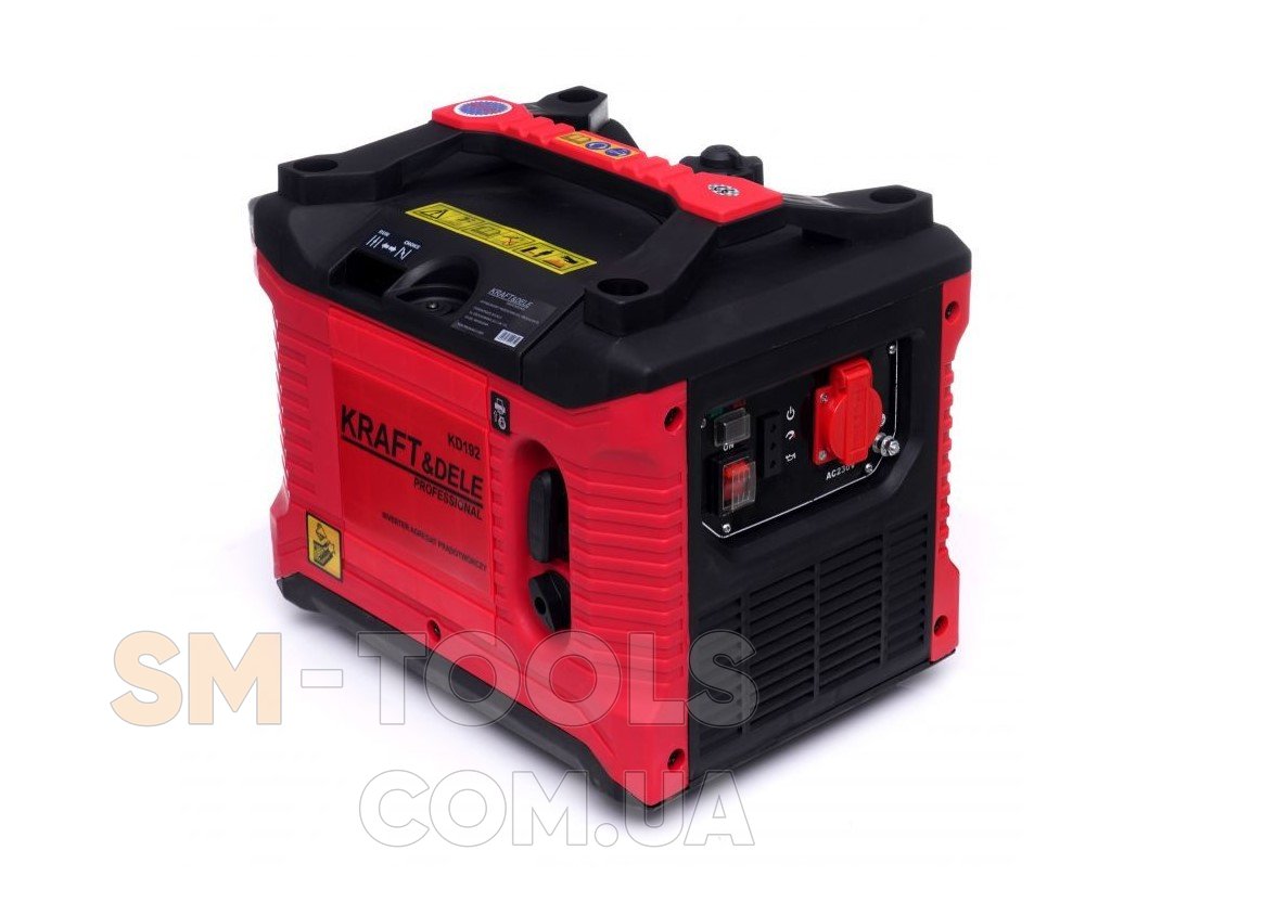 нверторный генератор Kraft&Dele KD 192 с одноцилиндровым 4-тактным двигателем с воздушным охлаждением OHV. Генератор KD 192 оснащен индикаторами напряжения, имеет защиту от перегрузки и индикатор уровня масла, имеет стабильный ток, напряжение и частоту 50 Гц в отличие от традиционных генераторов, работающих с постоянной скоростью/оборотами в минуту. Портативный генератор KRAFT & DELE оснащен микропроцессором, управляемым технологией Intelligent Throttle, регулирующим скорость двигателя относительно нагрузки.