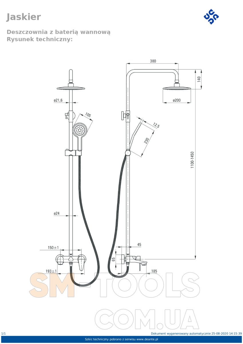 Характеристики Душевая система Deante Coriander NAC_01JM: