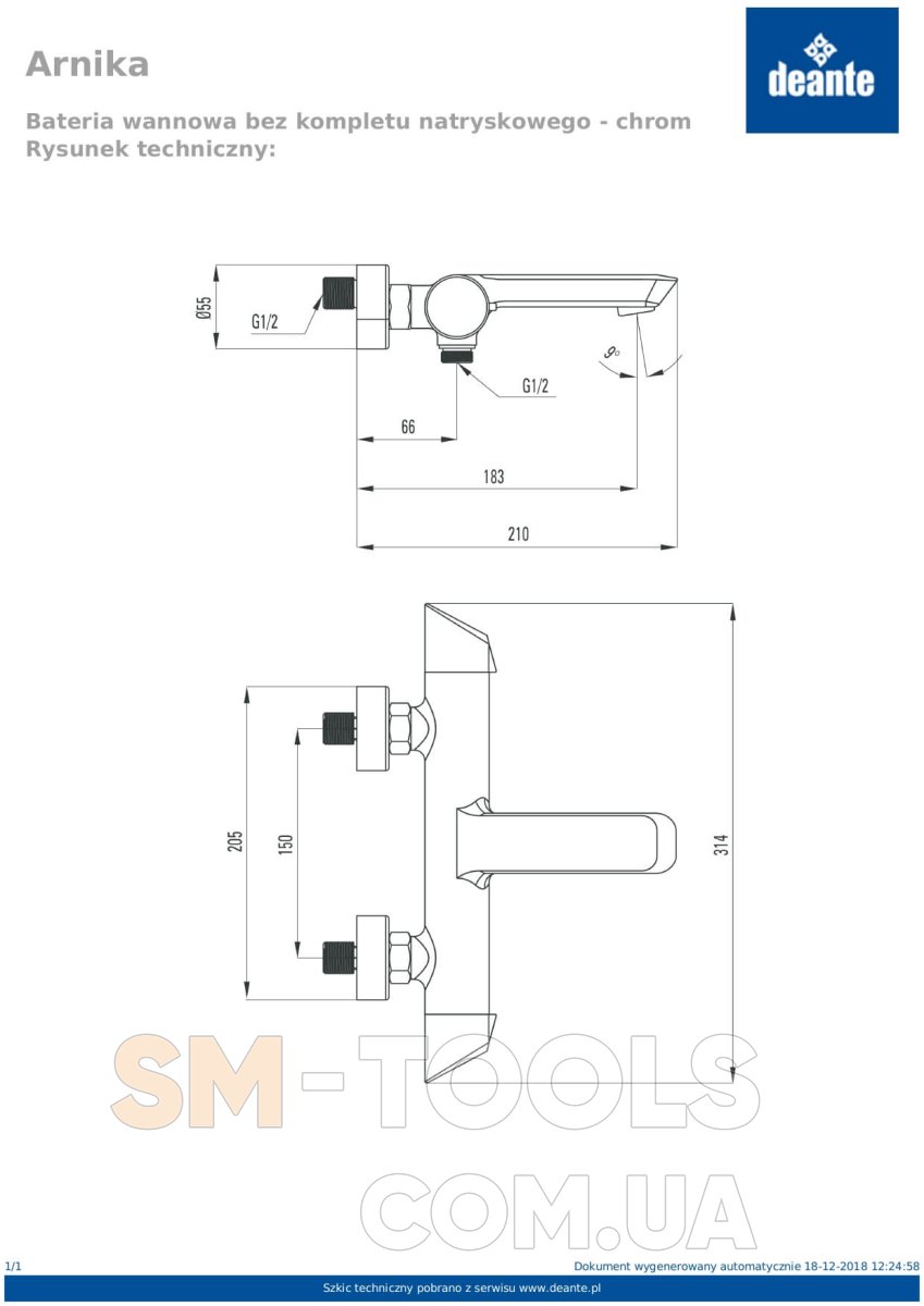Характеристики Смеситель для ванны Deante Arnika BQA_N10M: