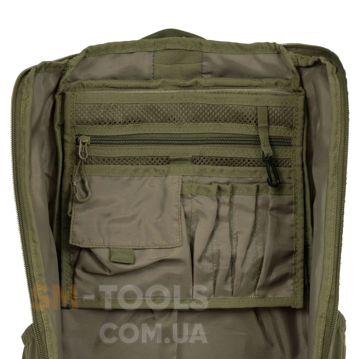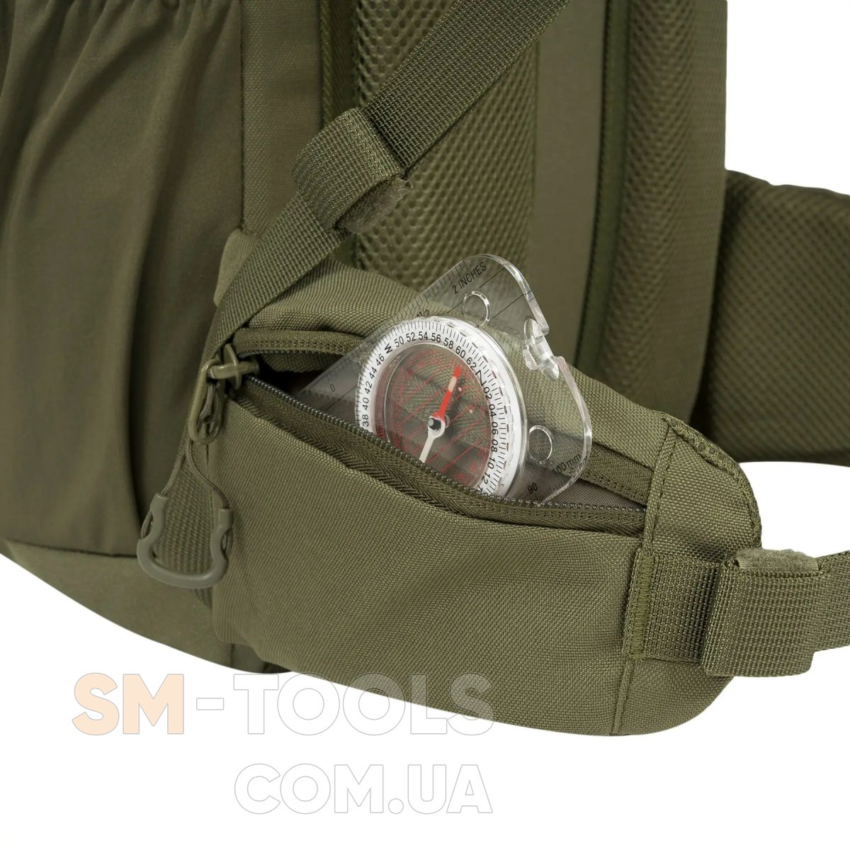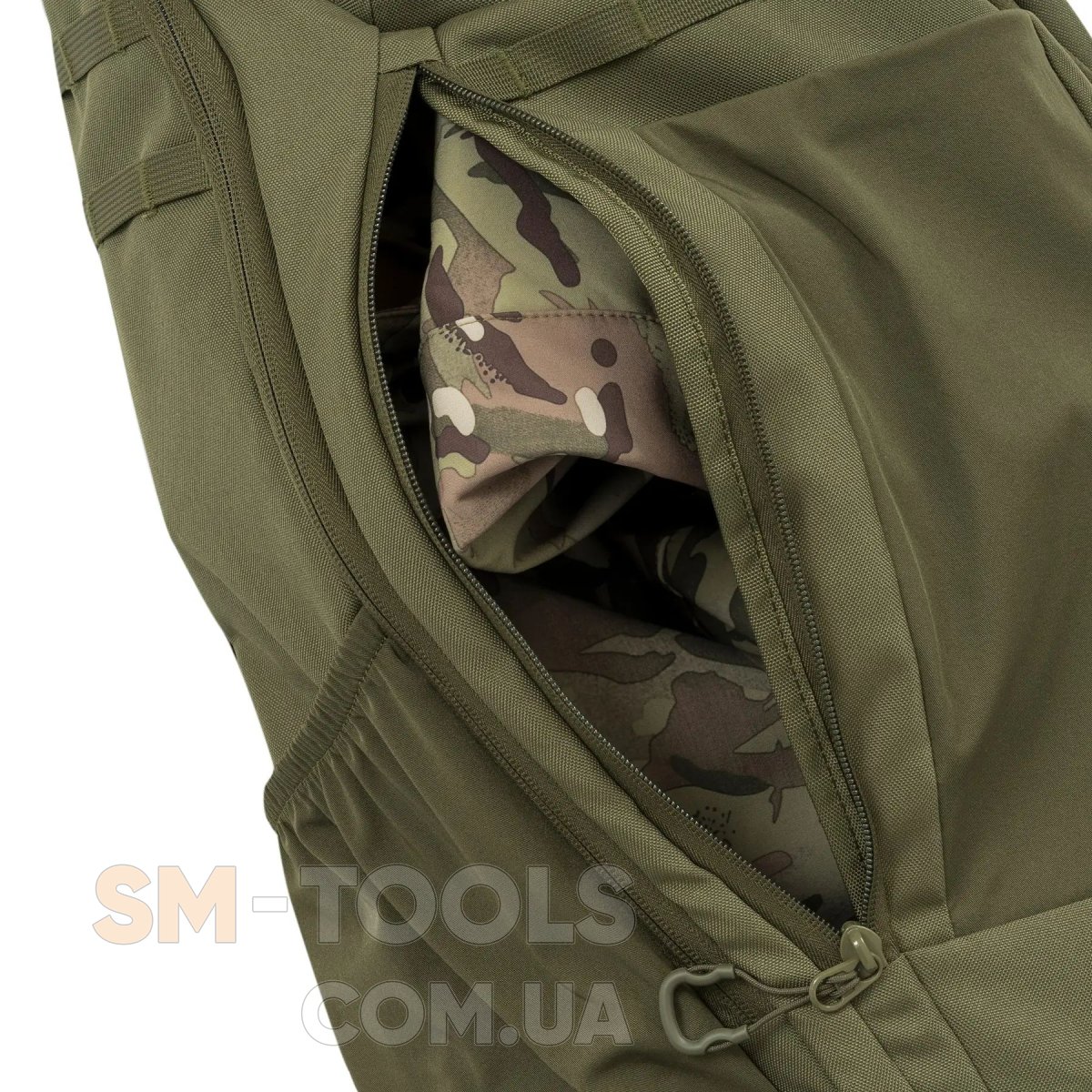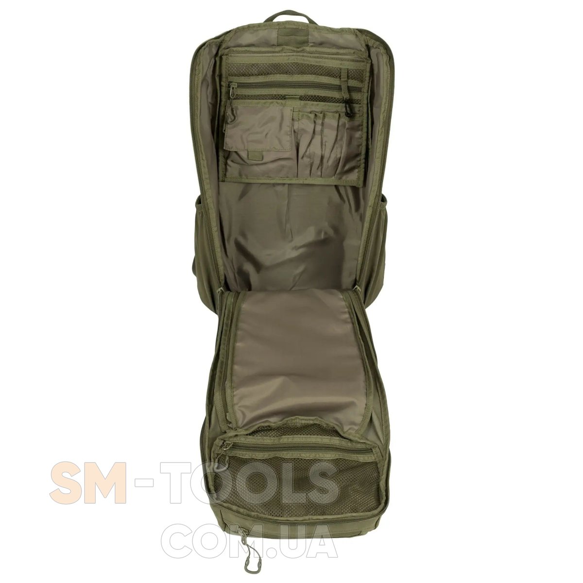 - Кроме основного отделения, двух боковых эластичных карманов, фронтального кармана и кармана сверху, этот рюкзак имеет систему креплений MOLLE для фиксации снаряжения, а также совместим с питьевой системой (гидратором).