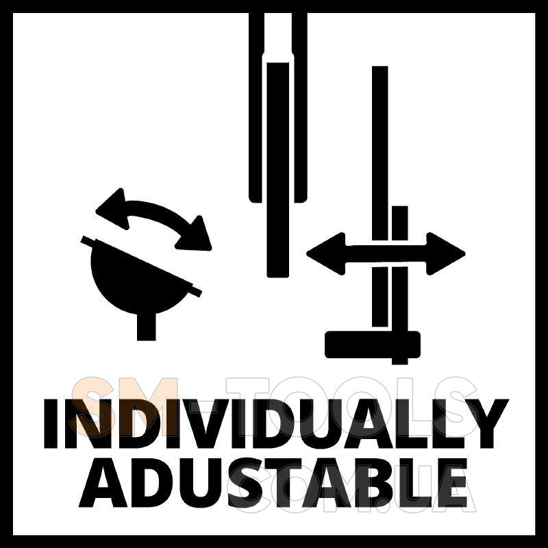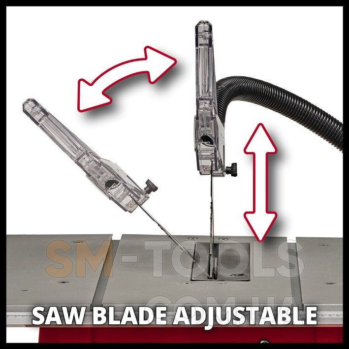 - Регулировка пильного диска 2 в 1 (высота, наклон 0 ° - 45 °)