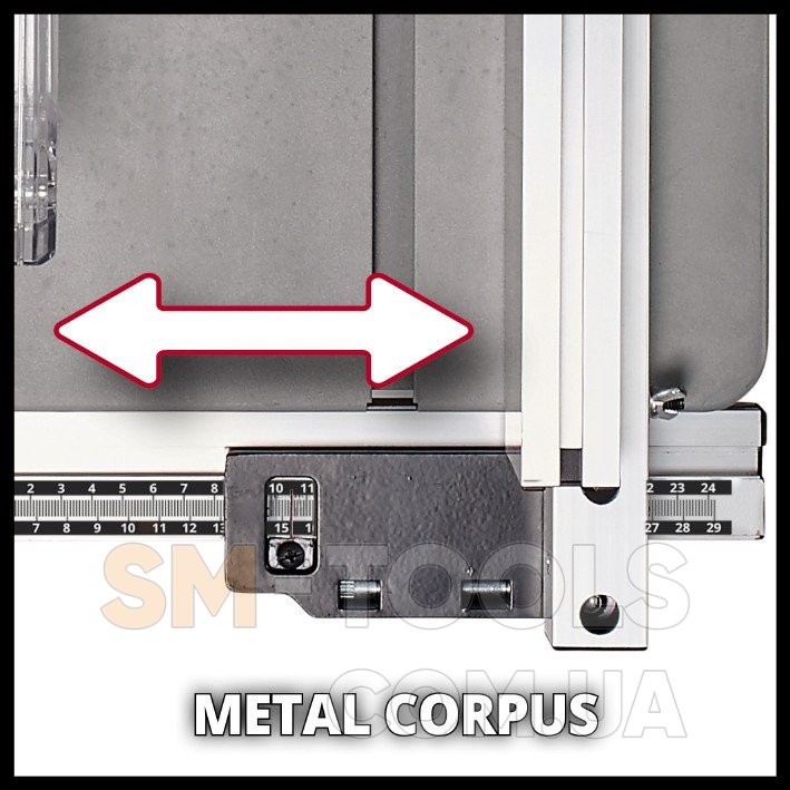 - Поперечный упор с угловой шкалой для легкой резки под углом (+/- 60 °)