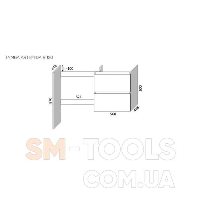 Высота тумбы – 870 мм.