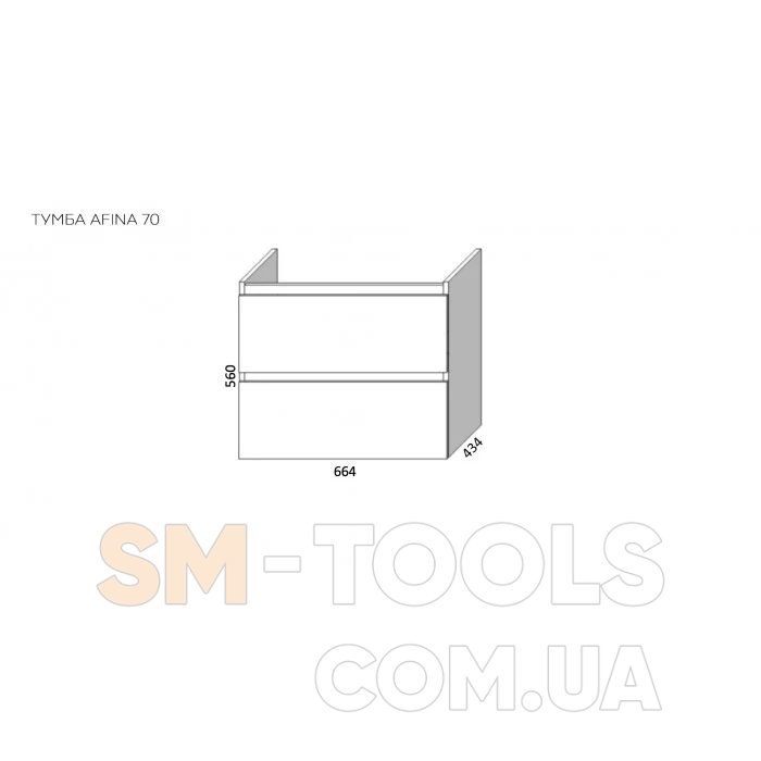 Подвесная тумба Afina 70 изготовлена из высококачественного МДФ и ДСП в белом оттенке с глянцевой поверхностью. Такая модель шириной 66,4 см и высотой 56 см подойдет для небольших ванных комнат и не займет много места. Два больших выдвижных ящика позволят хранить необходимые принадлежности для ванной комнаты. Тумба предназначена для установки на стену. Это дает ряд преимуществ, среди которых легкий внешний вид, простота уборки и поддержания гигиены.