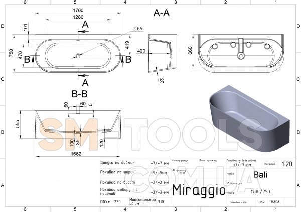 Ванна MIRAGGIO BALI 170x75