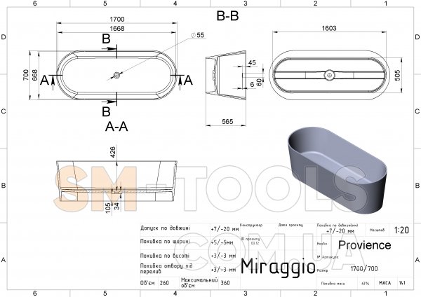 Ванна MIRAGGIO PROVIDENCE 170x70