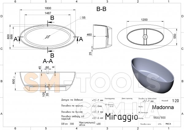 Отдельно стоящая ванна Madonna - новинка 2021 года от бренда Miraggio. Она имеет идеальную геометрию, форма ванны - острый овал.