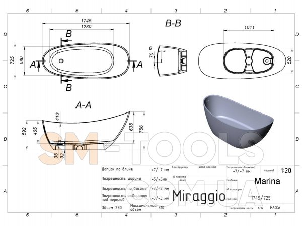 Овальная ванна из литьевого мрамора от производителя выполнена в минималистичном стиле. Объем ванны MARINA составляет 310 литров. Она устойчива к температурным перепадам, загрязнениям и царапинам. Ванна бесшумна (поглощают звуки воды) и надежна.