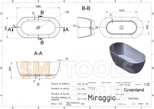 Сантехника Miraggio производится по авторской технологии, которая предполагает смешивание мраморной крошки и полиэфирной смолы в вакууме. Дополнительно изделие покрыто слоем Gelcoat ISO NPG. Этот антибактериальный гель защищает ванну от влаги и механических повреждений.