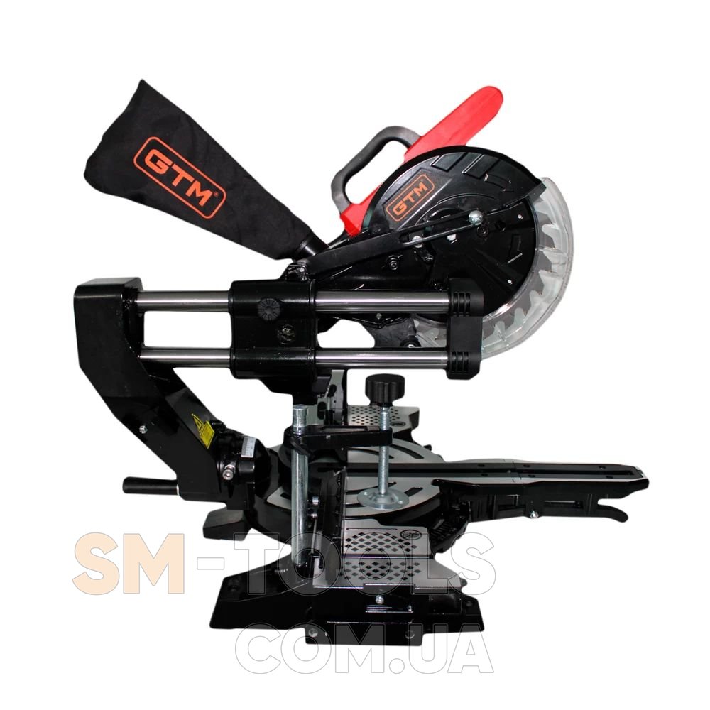 Торцовочная пила GTM HM9085 поставляется в картонной упаковке с пильным диском, расширителями для стола, прижимной струбциной и пылесборником.