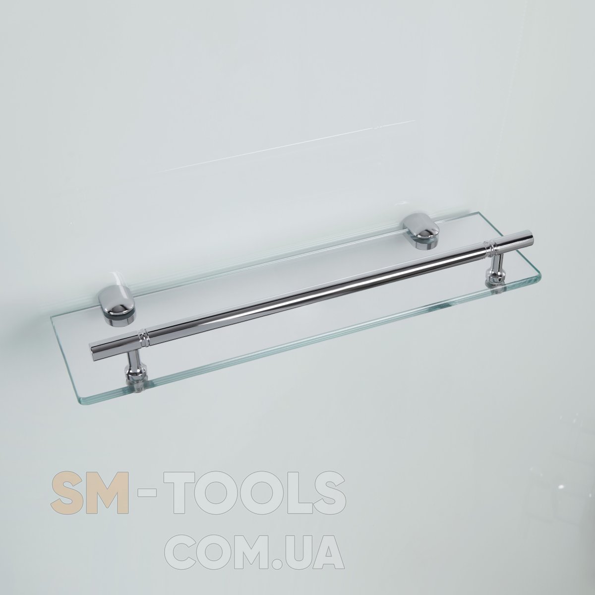 Ручки, двойные ролики, профиль, комплект крепежей, задняя стенка, глухое стекло, стеклянные двери, панель, смеситель, лейка для ручного душа, лейка для верхнего душа, душевой шланг, кронштейн, верхняя крышка, стеклянная полка.