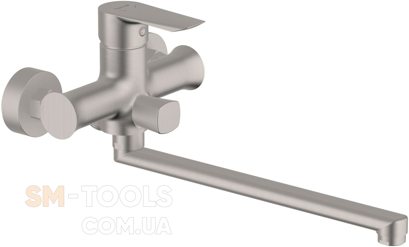 Смеситель для ванны настенный однорычажный, длина излива 30 см;