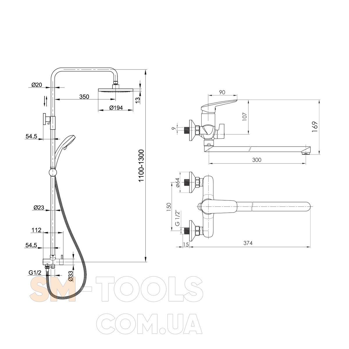 Характеристики Смеситель для ванны с душевой системой Imprese Praha New SET20220124: