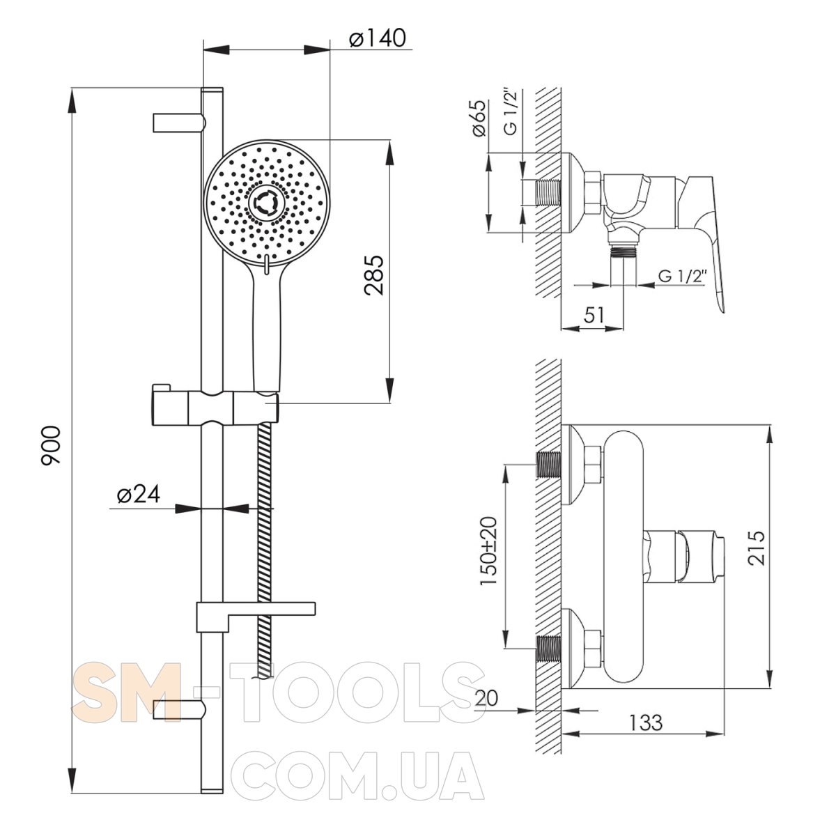 - лейка диаметр 140мм, 3 режима: ливень, массаж, туман