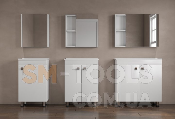 - Комплектация: тумба с раковиной, зеркальный шкаф