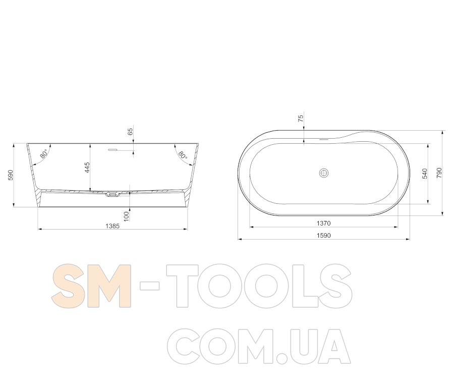 RAINA ванна 160*80см, из материала искусственный камень Stonex, с сифоном в комплекте