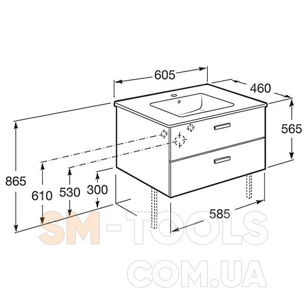 Характеристики Тумба от мебельного комплекта A855854423 Roca Victoria Basic A856575423: