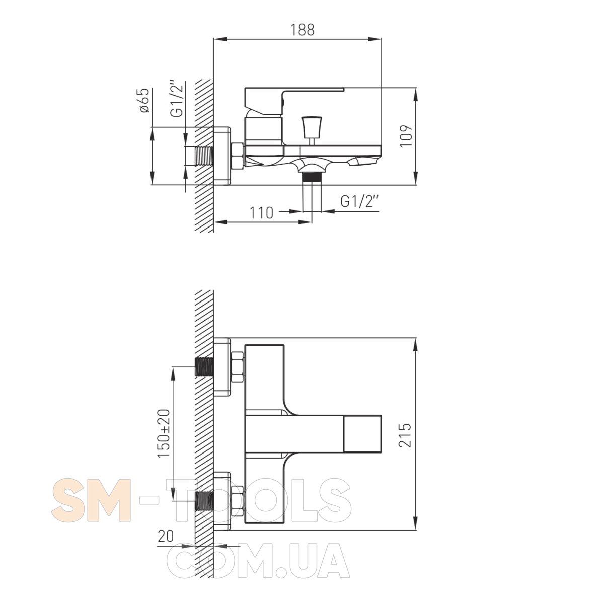 Тип монтажа: настенный, 2 отверстия
