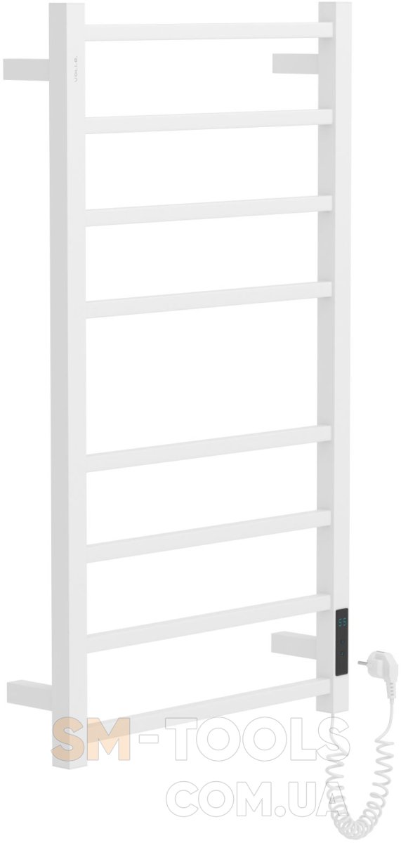 Полотенцесушители VOLLE органично дополняют ассортимент товаров для ванной комнаты от испанской марки. Разнообразие форм и цветов дают высокую сочетаемость с сериями смесителей, керамики и мебели в фирменных цветах cromo, cepillado cromo, blanco, de la noche. Серия полотенцесушителей CUADRO выполнена в квадратных формах, размеры 500х900 мм, 8 перемычек. Полотенцесушители изготовлены из нержавеющей стали AISI304 с толщиной стенки 1 мм. Покупателю доступен выбор правого или левого размещения программатора и спирального кабеля питания 1м с заземлением. Электрические параметры - 230В/50Гц, 120W, класс защиты IP44, термостатический предохранитель 70 ˚С, термостойкая изоляция нагревательного кабеля до 280 ˚С. Электрический полотенцесушитель предназначен для сушки и подогрева изделий из текстиля, а не для обогрева помещений. Максимальная нагрузка на полотенцесушитель 6 кг. Алгоритм работы полотенцесушителя VOLLE определяется настройками программатора температуры нагрева (45-50-55-60-70 ˚С) и таймера автоматического выключения (1-2-3-4-5-6-7-8 часов). При включении программатор работает с последними сохраненными настройками.