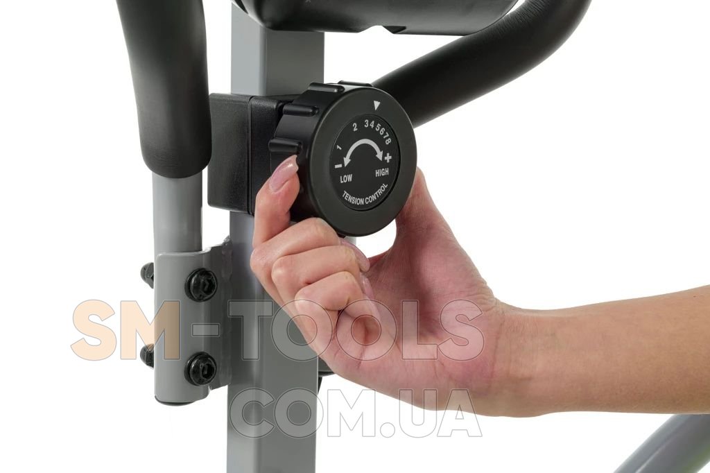 Магнитная система с маховиком весом 8 кг обеспечивает плавную и тихую работу тренажера. Магнитное сопротивление можно регулировать до 8 уровней. Это позволяет эффективно и быстро настроить каждую тренировку в соответствии с вашими потребностями с помощью. Также благодаря этому могут тренироваться как профессионалы, так и новички.