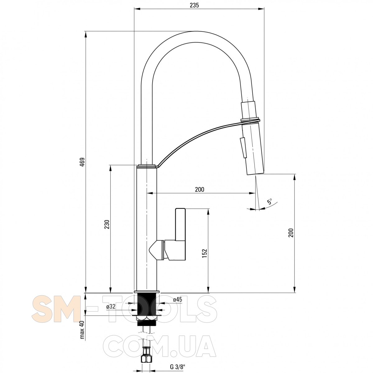 Корпус смесителя изготовлен из латуни высокого качества. Смеситель оборудован струйным аэратором. Смеситель с функциональным выдвижным изливом. 2-х функциональная душевая лейка (дождь и водный туман). Монтажная втулка облегчает установку смесителя. Соединительный шланг 45 см. в комплекте. Класс расхода Z (4-9 л/мин) позволяет снизить потребление воды.
