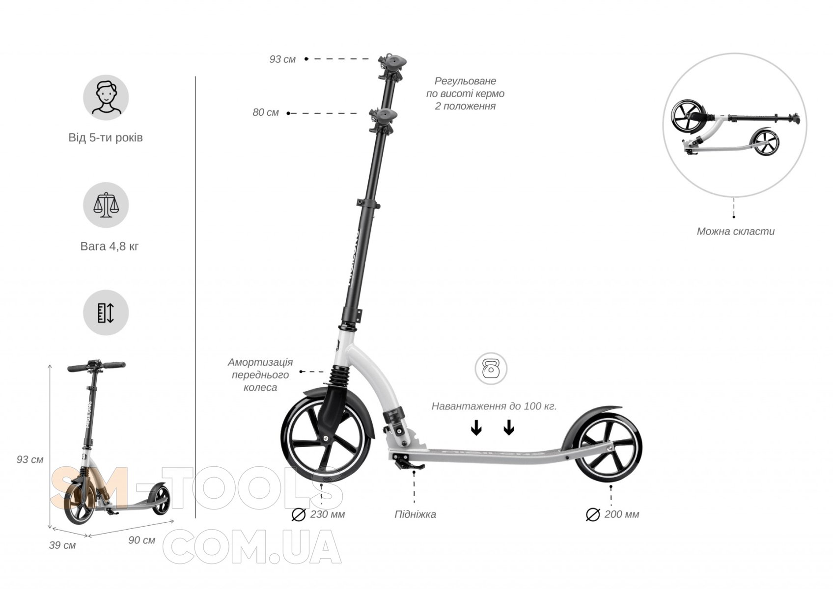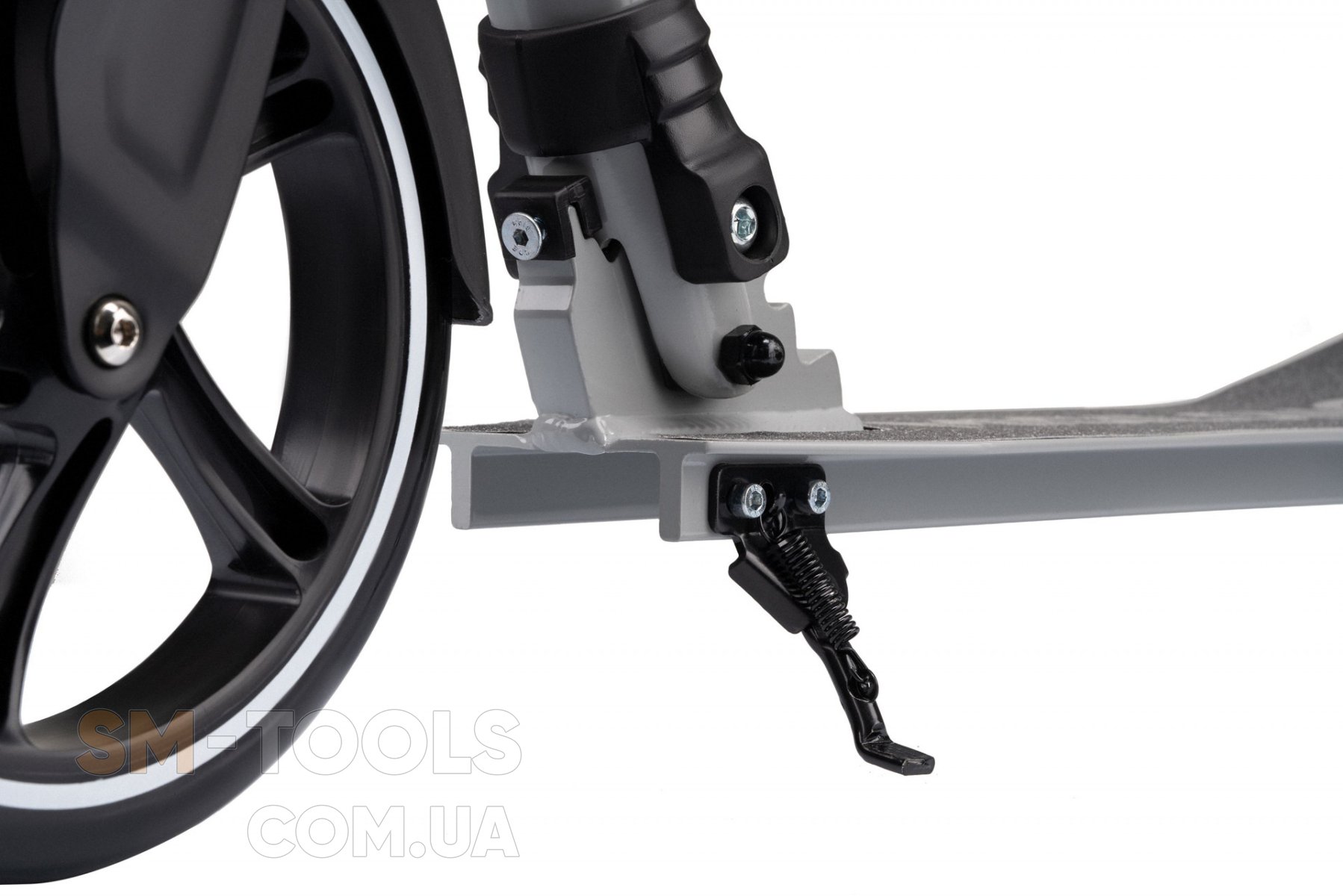 Для удобства хранения и транспортировки самокат полностью складывается, включая ручки. Ручки фиксируются зажимным механизмом, обеспечивающим полное отсутствие вибрации в местах фиксации.